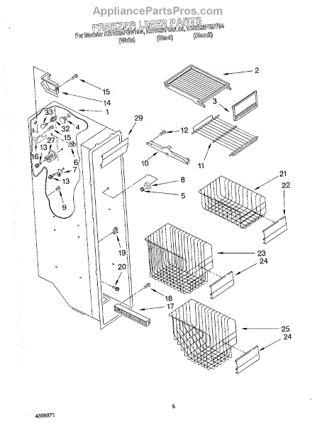 Parts for Kitchenaid KSRS25FGBT04: 04 - Freezer Liner Parts