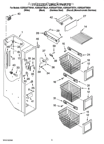 Parts for Kitchenaid KSRS25FTSS01: 04 - Freezer Liner Parts