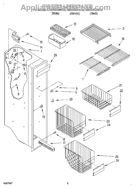 Parts for Kitchenaid KSRS25KGBL00: 04 - Freezer Liner Parts