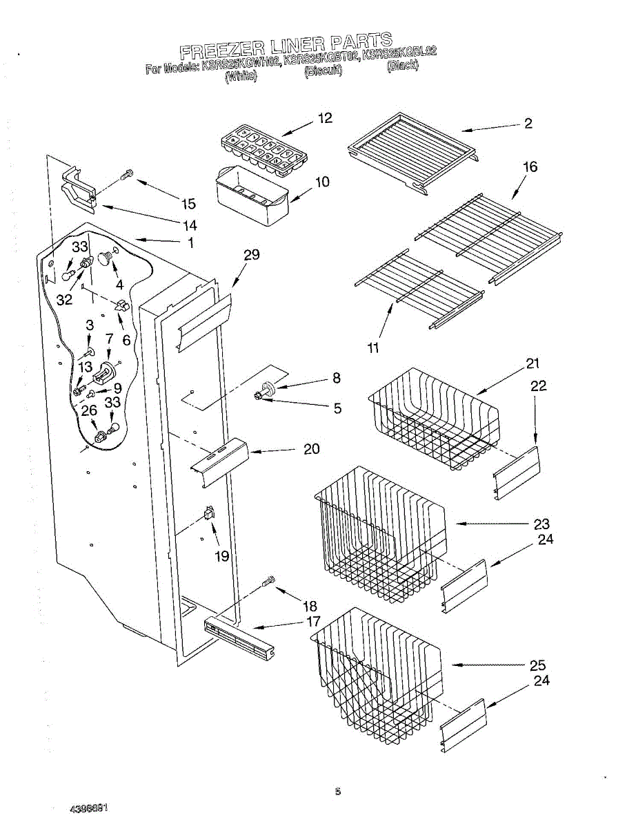 Parts for Kitchenaid KSRS25KGWH02: 04 - Freezer Liner Parts