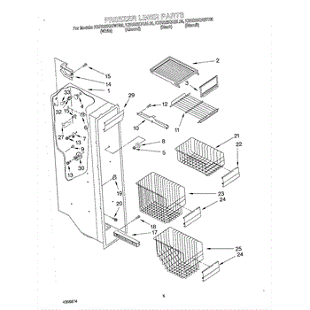 Parts for Kitchenaid KSRS25QGBT05: 04 - Freezer Liner Parts