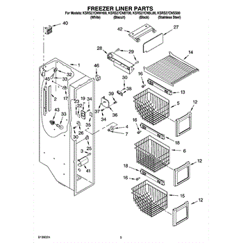 Parts for Kitchenaid KSRS27CNSS00: 04 - Freezer Liner Parts