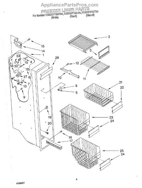 Parts for Kitchenaid KSRS27FGWH04: 04 - Freezer Liner Parts