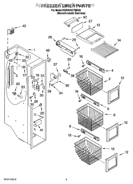 Parts for Kitchenaid KSRW25CTMK00: 04 - Freezer Liner Parts