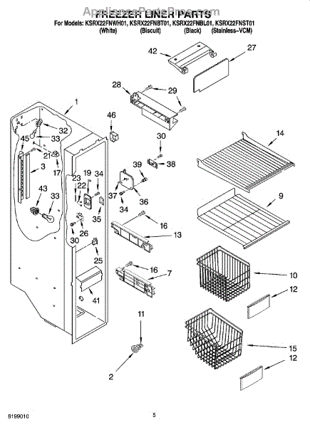 Parts for Kitchenaid KSRX22FNBT01: 04 - Freezer Liner Parts