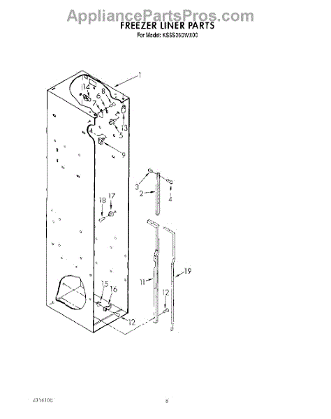This screw is used to secure the handle end cap to the center of the door. The screw size measures 8-18 x 1/2 inches.