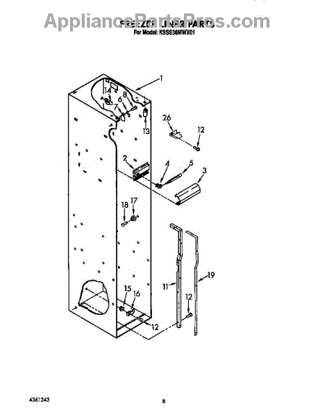 This screw is used to secure the handle end cap to the center of the door. The screw size measures 8-18 x 1/2 inches.