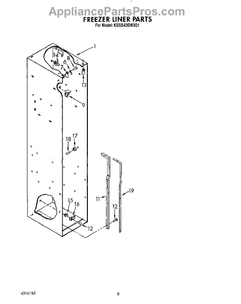Parts for Kitchenaid KSSS42DWX01: 05 - Freezer Liner Parts