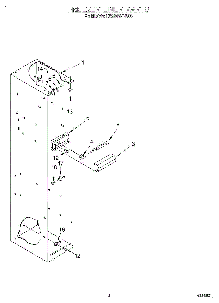 Parts for Kitchenaid KSSS42MHX00: 03 - Freezer Liner Parts