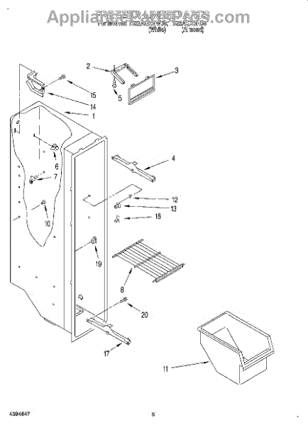 Parts for Whirlpool TS22AQXGW00: 04 - Freezer Liner Parts