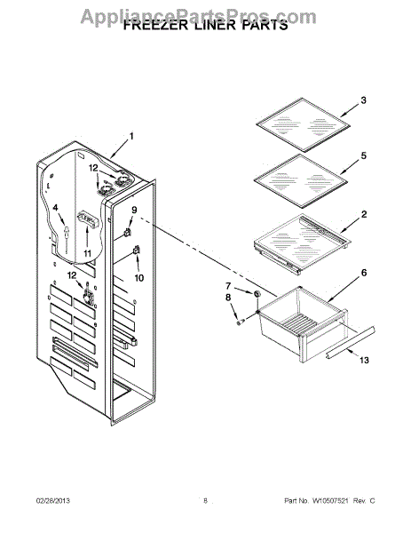This one-piece freezer bin is the molded drawer for the freezer compartment. Replacing a cracked or warped pan restores storage capacity and smooth sliding, keeping frozen items organized and the drawer securely seated on its rails. What it does: