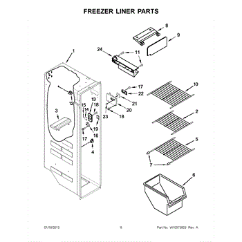 This freezer bin replaces a cracked or missing bin to restore organized storage in your freezer. It mounts on existing tabs or rails to keep frozen items secure and easy to access.