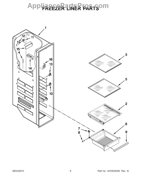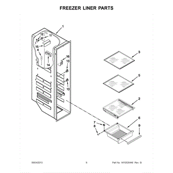 This one-piece freezer bin is the molded drawer for the freezer compartment. Replacing a cracked or warped pan restores storage capacity and smooth sliding, keeping frozen items organized and the drawer securely seated on its rails. What it does: