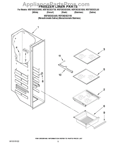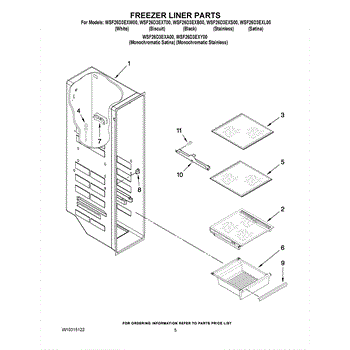 Parts for Whirlpool WSF26D3EXW00: 04 - Freezer Liner Parts
