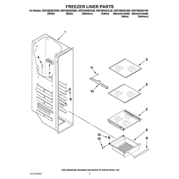Molded plastic drawer for freezer compartment. Replace if cracked, warped, or broken to restore smooth sliding and keep frozen items organized.