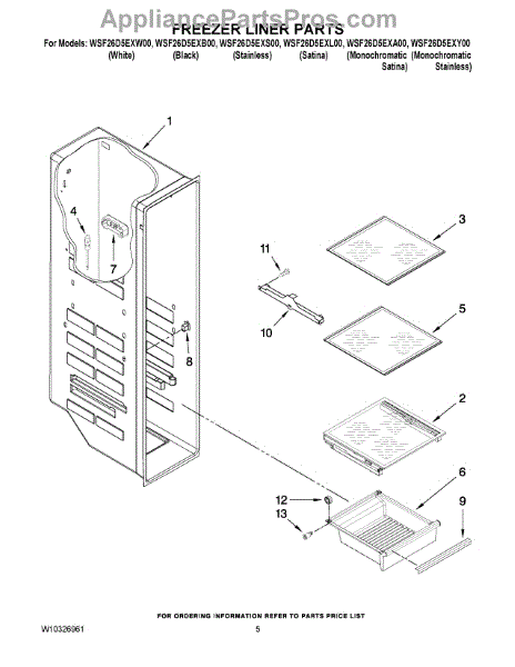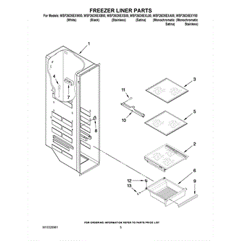 Parts for Whirlpool WSF26D5EXW00: 04 - Freezer Liner Parts