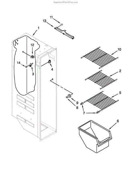 This replacement freezer door bin restores secure storage on the freezer door. It keeps smaller frozen items organized and easy to reach, replacing cracked or missing bins to help maintain a tidy, usable freezer space.