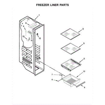 Molded plastic drawer for freezer compartment. Replace if cracked, warped, or broken to restore smooth sliding and keep frozen items organized.