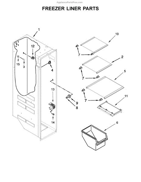 This replacement freezer door bin restores secure storage on the freezer door. It keeps smaller frozen items organized and easy to reach, replacing cracked or missing bins to help maintain a tidy, usable freezer space.