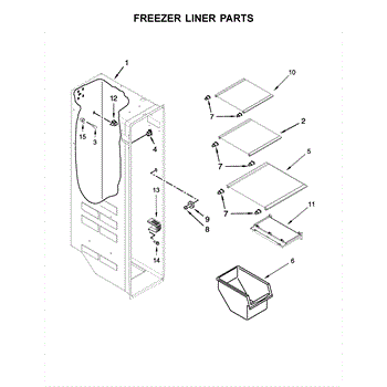 This replacement freezer door bin restores secure storage on the freezer door. It keeps smaller frozen items organized and easy to reach, replacing cracked or missing bins to help maintain a tidy, usable freezer space.