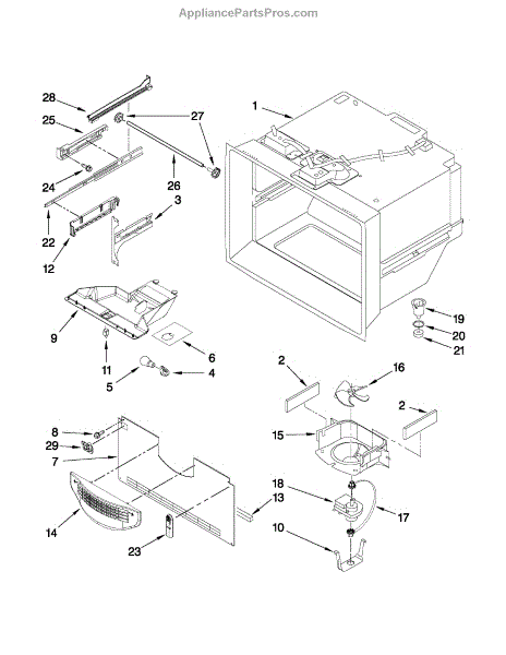 Supports and secures the freezer basket in proper position for smooth sliding. Replace if cracked, broken, or missing to restore basket alignment.
