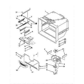 Protective housing that covers refrigerator fan components. Replace if cracked or broken to ensure proper airflow and protection. Confirm fit with model.