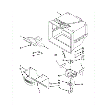 Protective housing that covers refrigerator fan components. Replace if cracked or broken to ensure proper airflow and protection. Confirm fit with model.