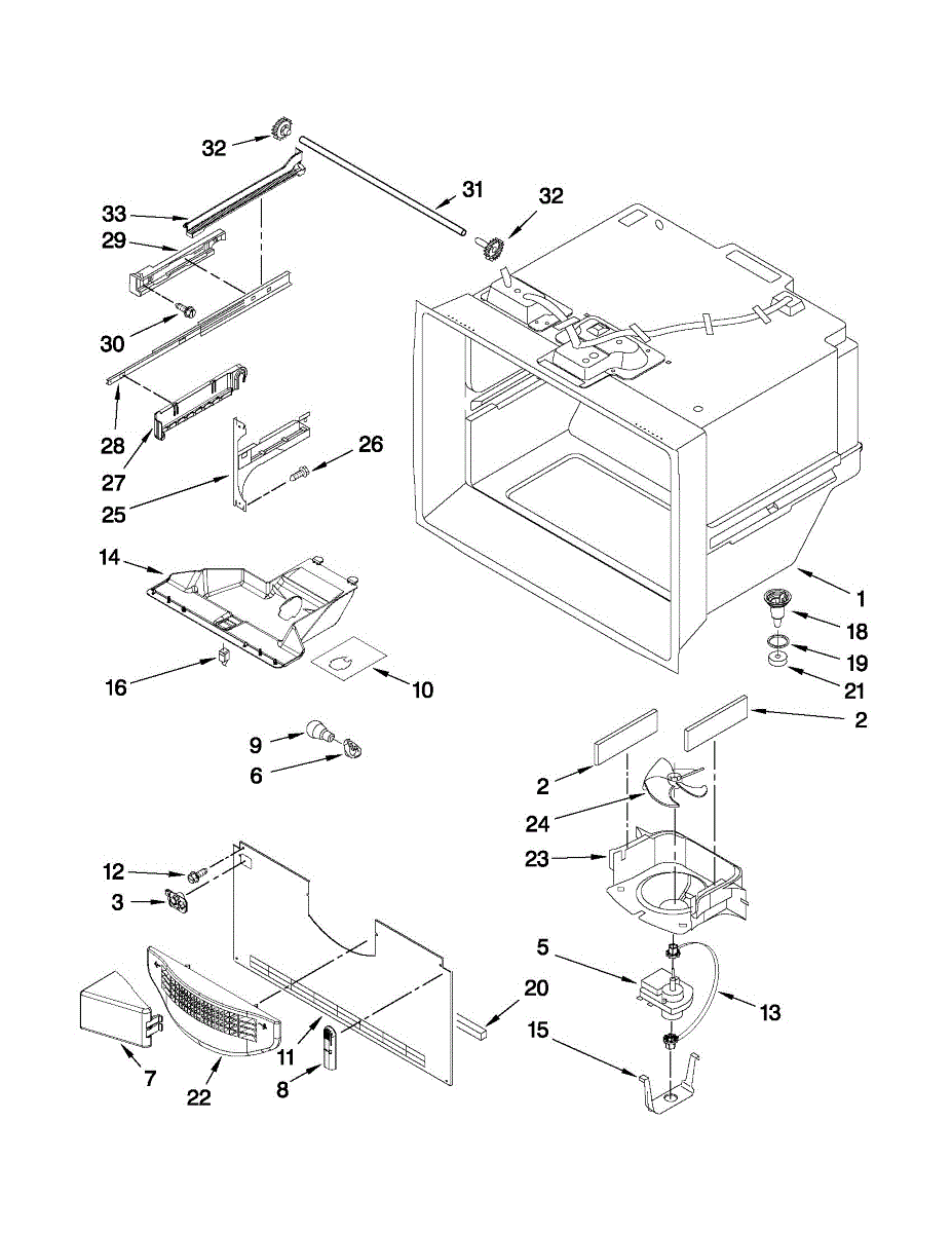 • One freezer basket cradle bracket