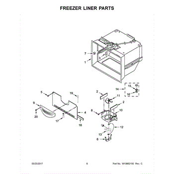 The Drain Funnel is an OEM part for Whirlpool French door refrigerators. It serves as the sloped plastic strainer that guides water from the evaporator coils s it into the drip pan below.