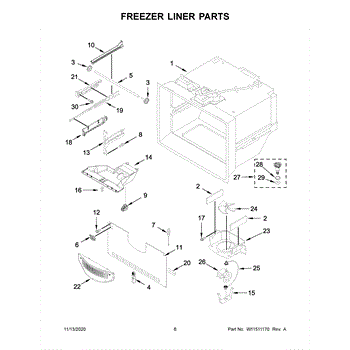 Parts for Kitchenaid KRBL109ESS02: Freezer Liner Parts
