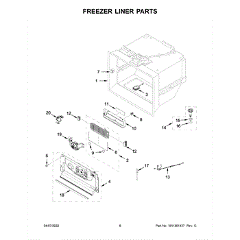 The Drain Funnel is an OEM part for Whirlpool French door refrigerators. It serves as the sloped plastic strainer that guides water from the evaporator coils s it into the drip pan below.