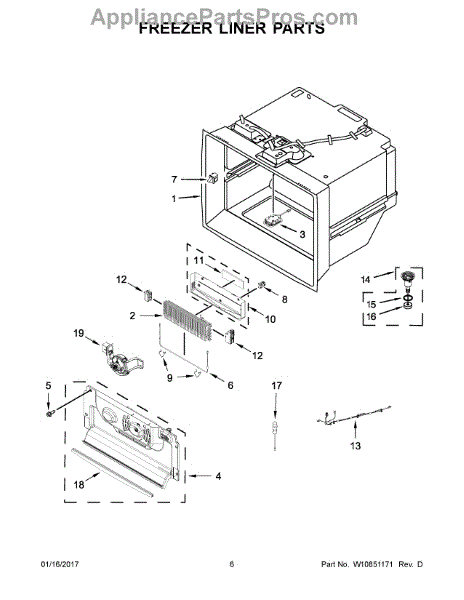 The Drain Funnel is an OEM part for Whirlpool French door refrigerators. It serves as the sloped plastic strainer that guides water from the evaporator coils s it into the drip pan below.