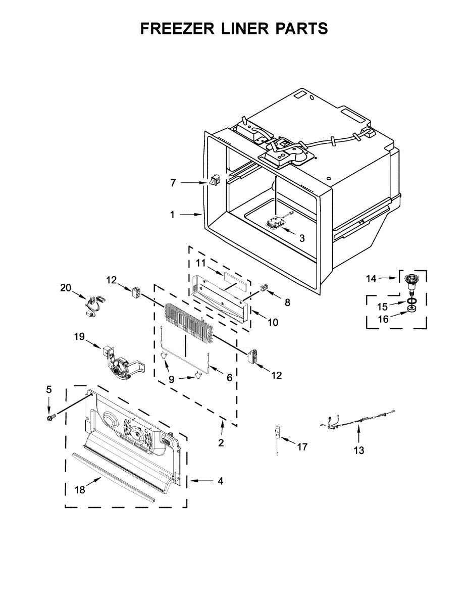 Parts for Kitchenaid KRFC804GSS00: Freezer Liner Parts