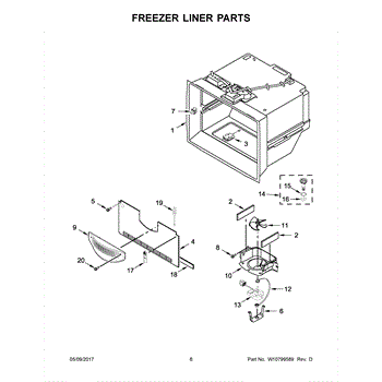 The Drain Funnel is an OEM part for Whirlpool French door refrigerators. It serves as the sloped plastic strainer that guides water from the evaporator coils s it into the drip pan below.