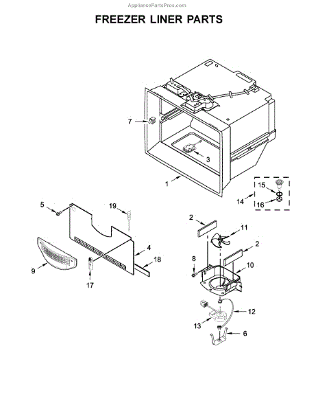 This evaporator cover is the molded shroud that protects the freezer evaporator and helps direct airflow for consistent cooling. It replaces a damaged or missing cover to reduce frost buildup and improve temperature performance. What it does: