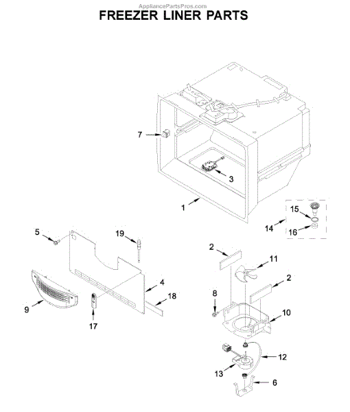 This evaporator cover is the molded shroud that protects the freezer evaporator and helps direct airflow for consistent cooling. It replaces a damaged or missing cover to reduce frost buildup and improve temperature performance. What it does: