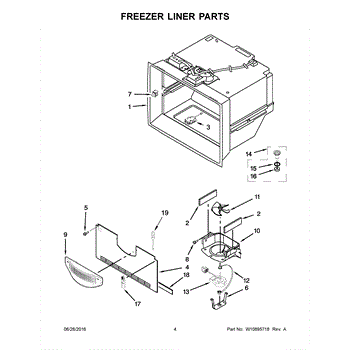 The Drain Funnel is an OEM part for Whirlpool French door refrigerators. It serves as the sloped plastic strainer that guides water from the evaporator coils s it into the drip pan below.