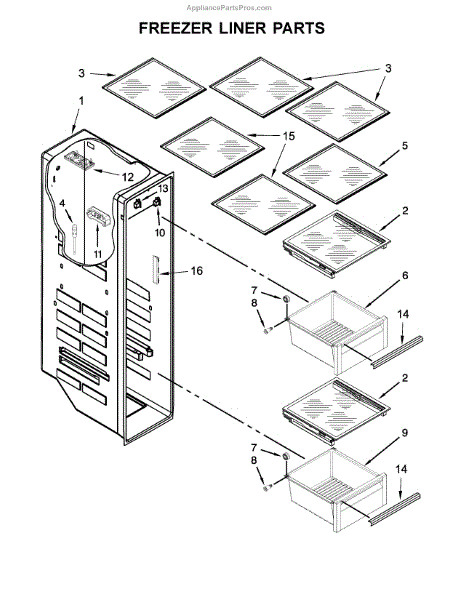 This replacement freezer bin is a molded plastic drawer that restores organized frozen-food storage in the freezer compartment. It replaces cracked, warped or damaged bins so items slide in and out smoothly and stay contained. What it does: