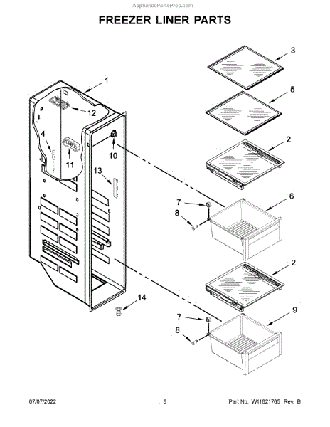 Parts for Kitchenaid KRSC700HBS04: Freezer Liner Parts