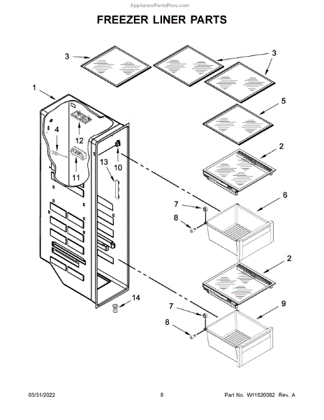 This replacement freezer bin is a molded plastic drawer that restores organized frozen-food storage in the freezer compartment. It replaces cracked, warped or damaged bins so items slide in and out smoothly and stay contained. What it does: