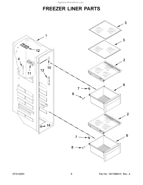 Parts for Kitchenaid KRSF705HBS05: Freezer Liner Parts