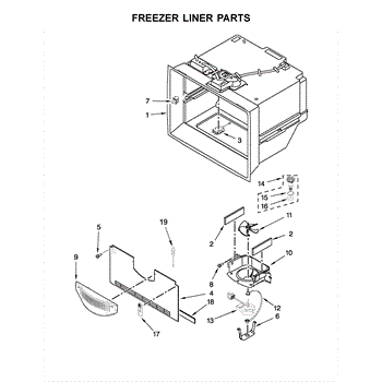 The Drain Funnel is an OEM part for Whirlpool French door refrigerators. It serves as the sloped plastic strainer that guides water from the evaporator coils s it into the drip pan below.