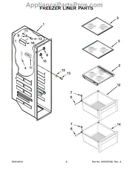 This freezer drawer bin replaces a cracked or missing bin so you can organize and access frozen foods easily. It restores a secure fit in the compartment and helps maintain the intended storage layout of your freezer.