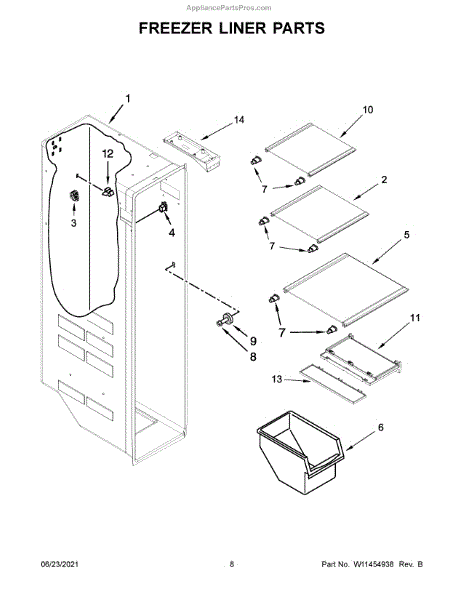 This replacement freezer bin restores secure, usable storage inside the freezer compartment. Replace a cracked, warped, or missing bin to keep frozen foods contained and organized, and to help prevent items from tipping or falling during normal door or drawer movement. What it does: