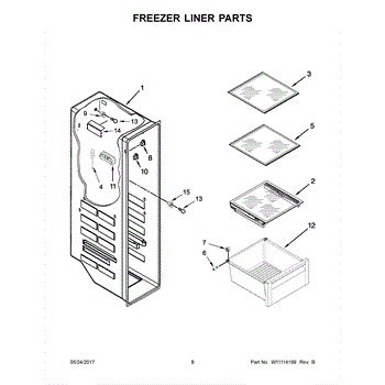 This one-piece freezer bin is the molded drawer for the freezer compartment. Replacing a cracked or warped pan restores storage capacity and smooth sliding, keeping frozen items organized and the drawer securely seated on its rails. What it does: