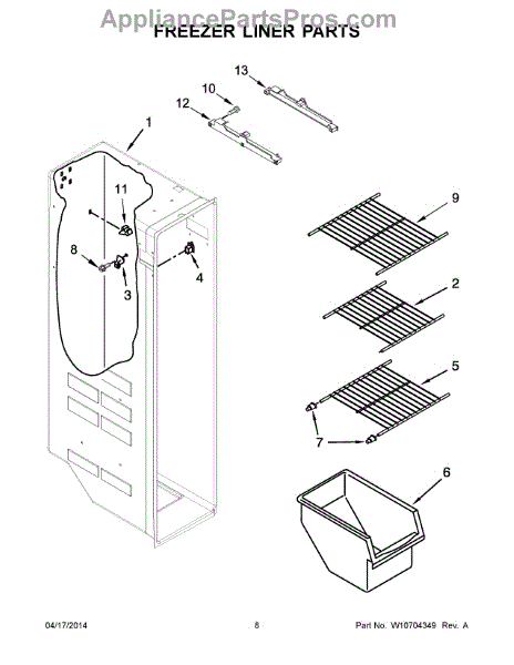 Parts for Whirlpool 7WRS22FEBF00: 05 - Freezer Liner Parts