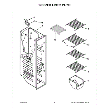 This replacement freezer door bin restores secure storage on the freezer door. It keeps smaller frozen items organized and easy to reach, replacing cracked or missing bins to help maintain a tidy, usable freezer space.