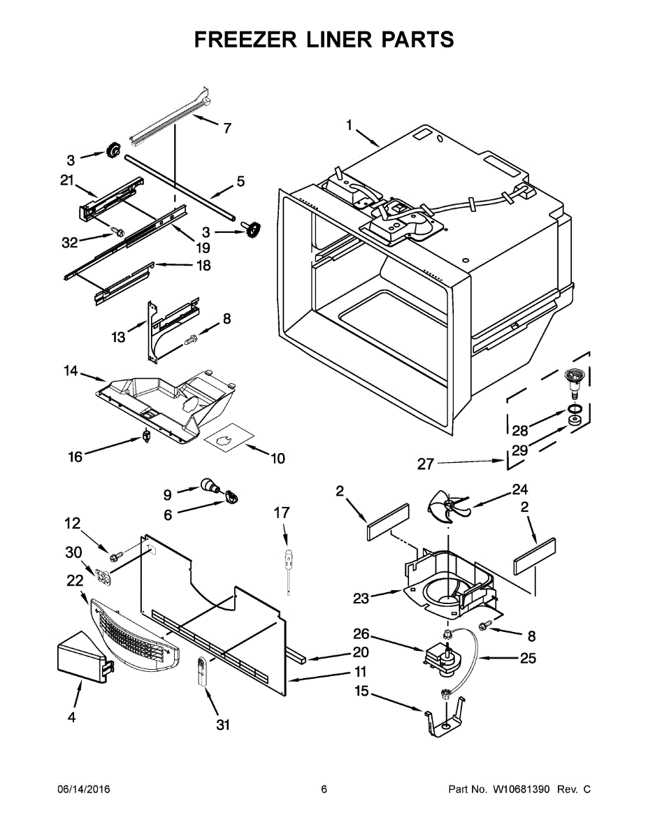 Support bracket that holds the freezer basket in position and allows it to slide smoothly. Replace if cracked, broken, or basket won't stay aligned.