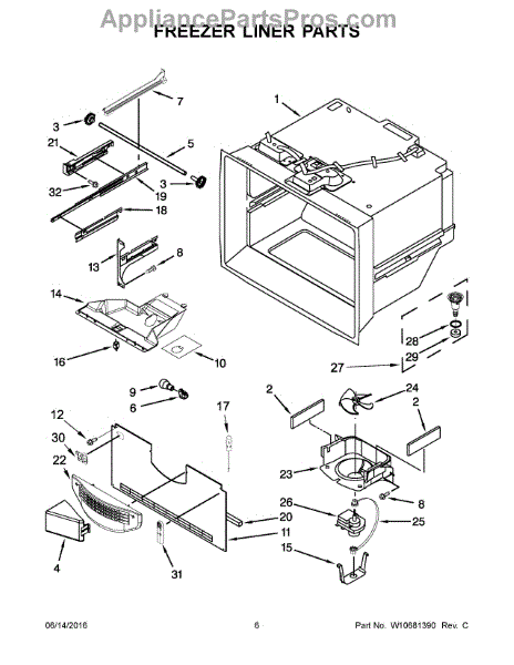 Supports and secures the freezer basket in proper position for smooth sliding. Replace if cracked, broken, or missing to restore basket alignment.