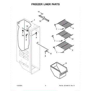 This freezer bin replaces a cracked or missing bin to restore organized storage in your freezer. It mounts on existing tabs or rails to keep frozen items secure and easy to access.